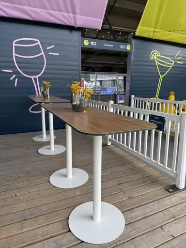 Whether round or square, the cocktail table is a classic for a successful event. The duration of your cocktail, the size of the venue, the type of guests, and the chosen format will help you determine the number of tables required. These factors will also influence your choice of stools to accompany the table and how many stools to place per table. For a quick cocktail event without food being served, it may not be necessary to add stools to every table. Guests can simply use them to place their drinks and lean on them for conversations and networking.