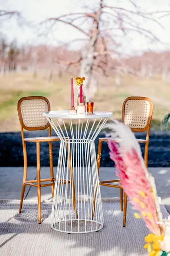 Whether round or square, the cocktail table is a classic for a successful event. The duration of your cocktail, the size of the venue, the type of guests, and the chosen format will help you determine the number of tables required. These factors will also influence your choice of stools to accompany the table and how many stools to place per table. For a quick cocktail event without food being served, it may not be necessary to add stools to every table. Guests can simply use them to place their drinks and lean on them for conversations and networking.