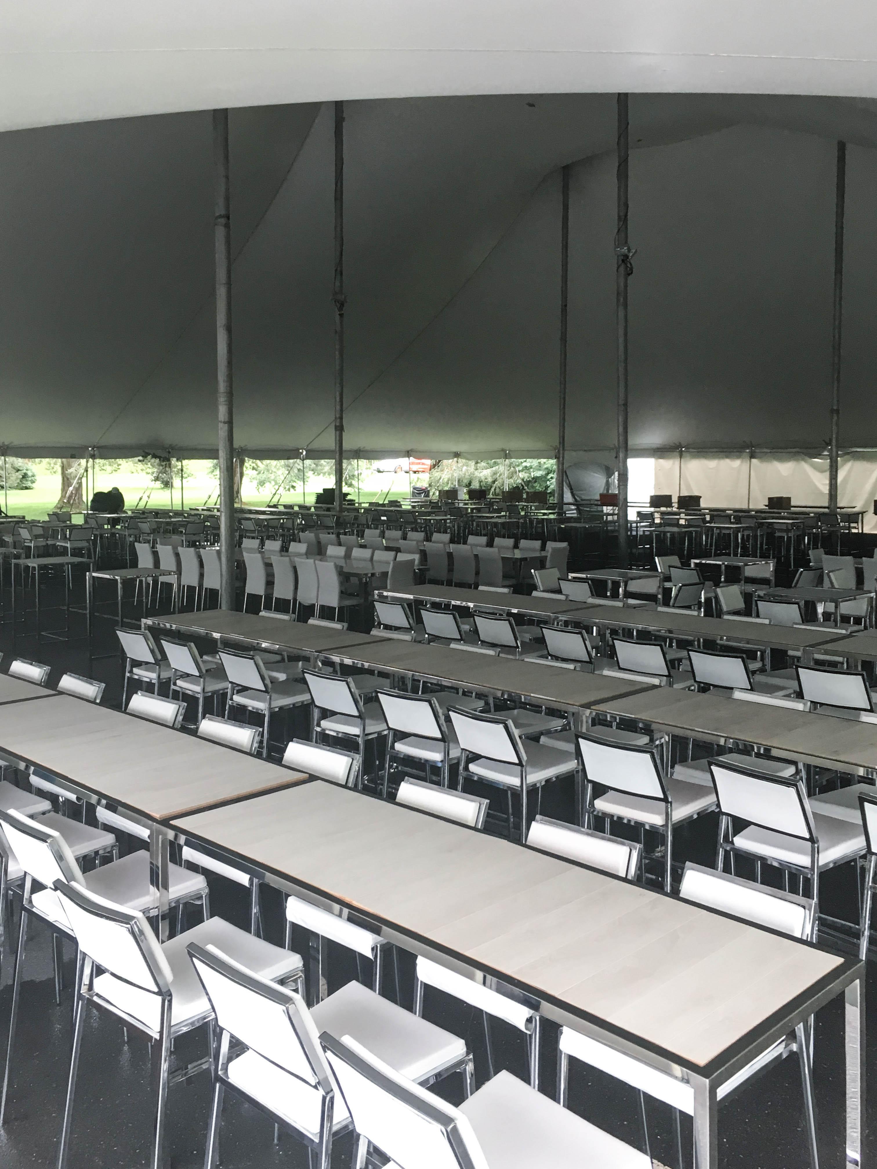 Le choix entre des bouchées passées au plateau ou des stations de nourriture dicteront la quantité de tables cocktails et de tabourets requis. Bar à cocktails, bar à vins, bar à spiritueux ou bar à bières ainsi que le nombre d'invités donneront un bon indice sur la quantité et le style de bar à disposer dans la salle. Le bar ne devrait jamais être trop près de l’entrée ou d’une station de nourriture populaire car cela nuit grandement à la fluidité de la circulation.